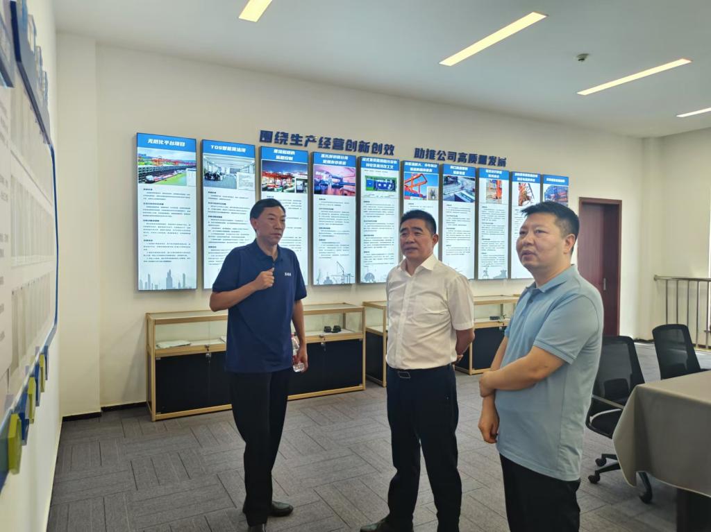 谭于一行先后实地调研了果园港埠公司铁路专用线、办公楼清廉示范班组和示范岗,以及果园集装箱公司胡万琪劳模创新工作室和C2楼廉洁文化长廊。