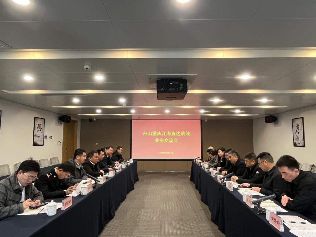 2月14日,屈宏一行转赴舟山市,与舟山市港航和口岸管理局召开“舟山重庆江海直达航线业务交流会”。会上,双方就航线流程、货源组织、政策扶持等工作进行了交流。双方一致表示,将构建“重去重回”的运输模式,加速推进江海直达体系建设,提升航线时效性,并在船员培训等方面开展务实合作,进一步深化区域港口资源协同,为两地高质量发展注入新动能。