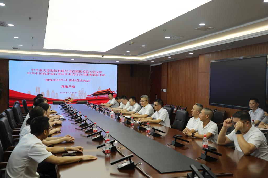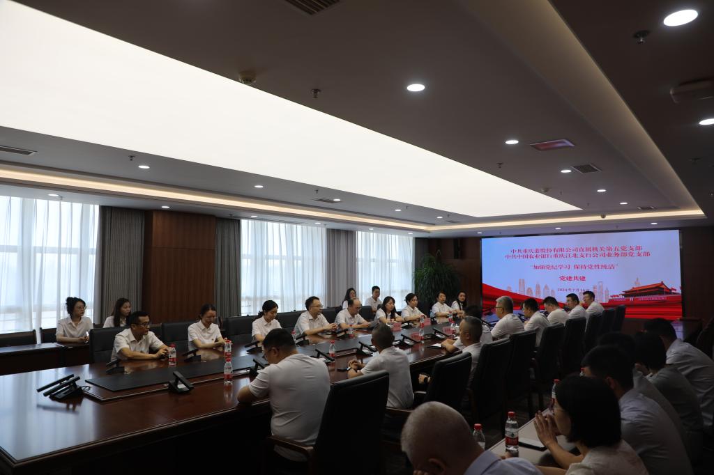 为进一步深学笃用习近平新时代中国特色社会主义思想,切实将中央党纪学习教育工作往深里走、往实里走、往心里走,推动全面从严治党向纵深发展,构建“资源共享、优势互补、共同提高”的党建新格局。7月16日下午,中共伟德体育官方网站股份有限公司直属机关第五党支部与中共中国农业银行重庆江北支行公司业务部党支部共同开展党建共建主题党日活动。