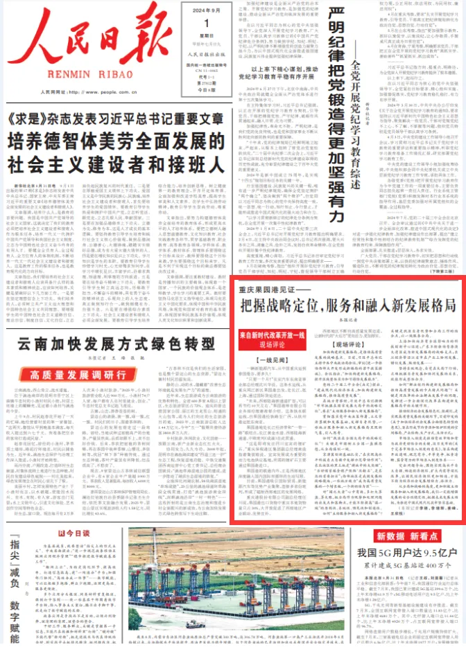 9月1日人民日报头版聚焦山城刊发来自“新时代改革开放一线·现场评论”《重庆果园港见证——把握战略定位,服务和融入新发展格局》全文如下↓↓↓一线见闻一辆新能源汽车,从中国重庆运到泰国曼谷,要多久?“只...2024-09-05