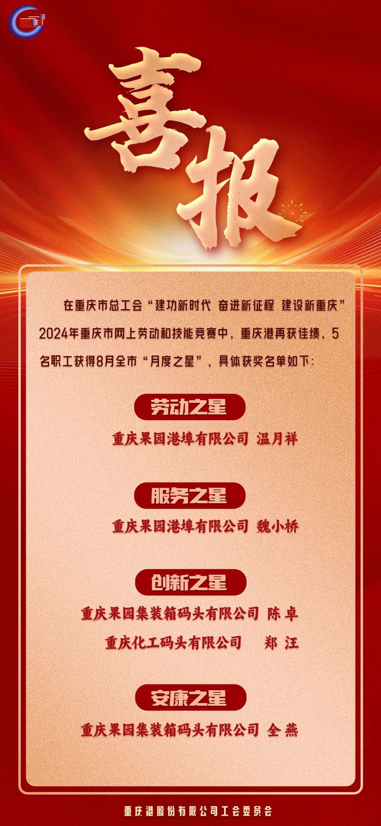 7月25-26日,市交通建设工会2024年集体协商竞赛在重庆红楼银杏大酒店举办,果园港埠公司派出黄正全、张潇尹、吕 良、谭清英4名选手代表伟德体育官方网站股份有限公司出战,喜获团体优秀奖。竞赛分为笔试和现场模拟环节。笔...2024-07-29